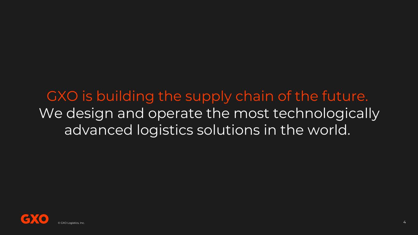 © GXO Logistics, Inc.© GXO Logistics, Inc. GXO is building the supply chain of the future. We design and operate the most technologically advanced logistics solutions in the world. 4